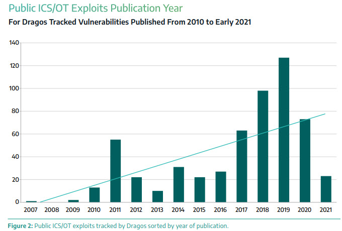 Research released by industrial cybersecurity company Dragos revealed that over 400 CVEs (Common Vulnerabilities and Exposures) consist of at least one publicly available exploit; some have multiple exploits, affecting both ICS and OT networks. This number is out of a total of more than 3000 CVEs that have been published since 2010.